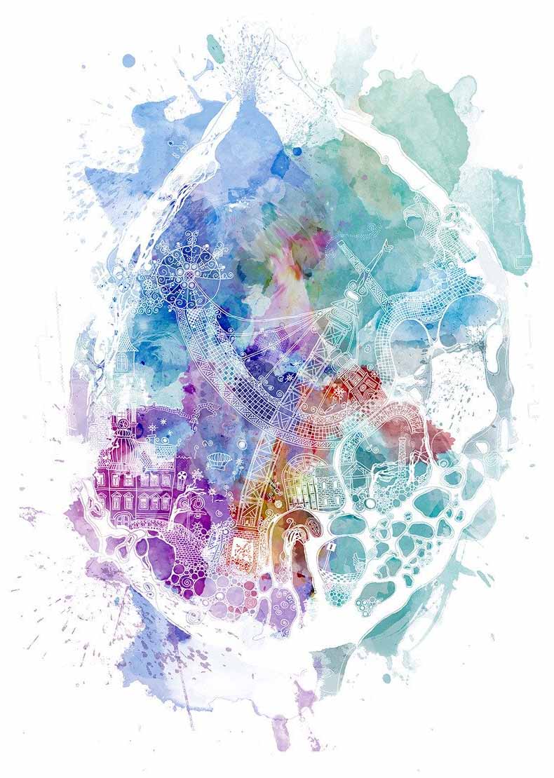 Walking along the embankment, the Architect noticed that the whole city could fit under the bridge, from palaces, granaries, and railyards to even the striped airships all floated under the Liberty Bridge. Even the lamp-posts that reached skyward preferred bending into a spiral to avoid hitting their heads. The Architect was supposed to make a mock-up for the next day, but now he found that his scissors, essential for the job, had somehow ended up on top of one of the bridge’s pillars, and he was a little worried about the fate of the iron birds.
