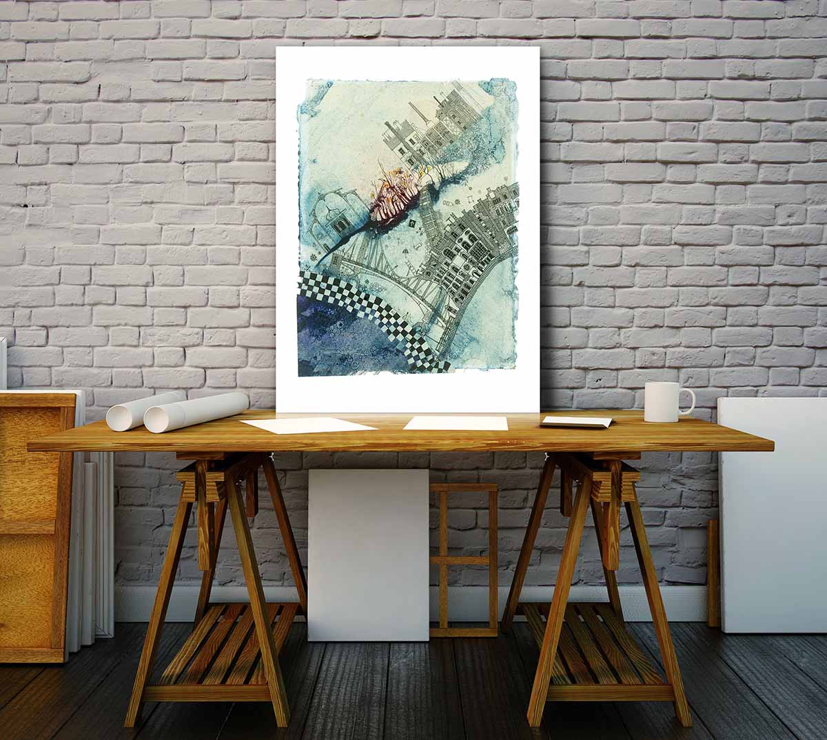 Colors printed on paper or canvas may slightly differ from those shown on the monitor.
