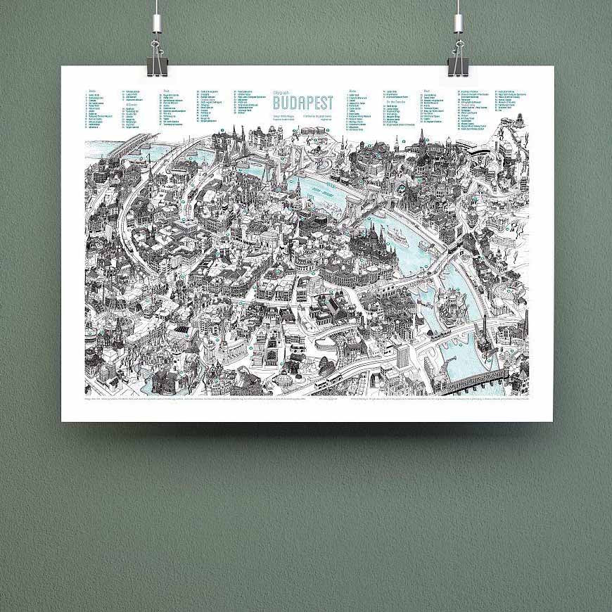 Budapest 50 Tourist Attractions 3D Map Poster