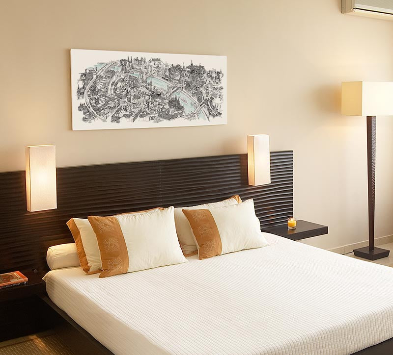 Colors printed on paper or canvas may slightly differ from those shown on the monitor.