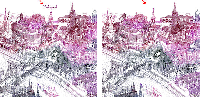 The Perspective Map of Budapest has many things for you to discover and to marvel about for hours, weeks, or even months. It draws up questions in the viewer, raises interest, and arouses the desire to check out all the actions depicted in the picture.
