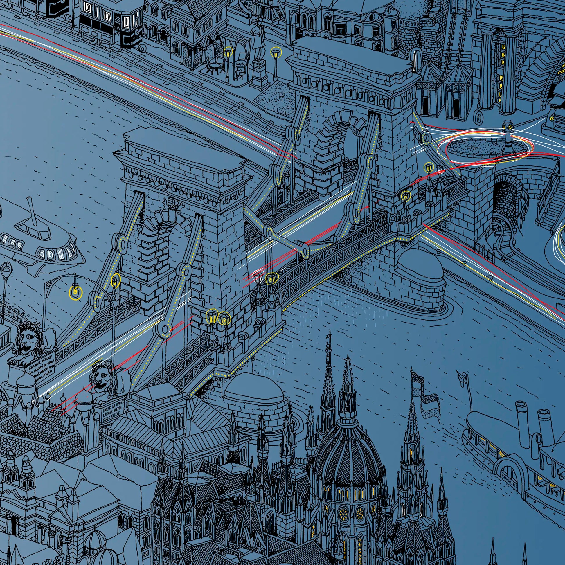 The Perspective Map of Budapest has many things to discover and marvel about for hours, weeks, or even months. It raises questions in the viewer, raises interest, and arouses the desire to check out all the actions depicted in the picture.