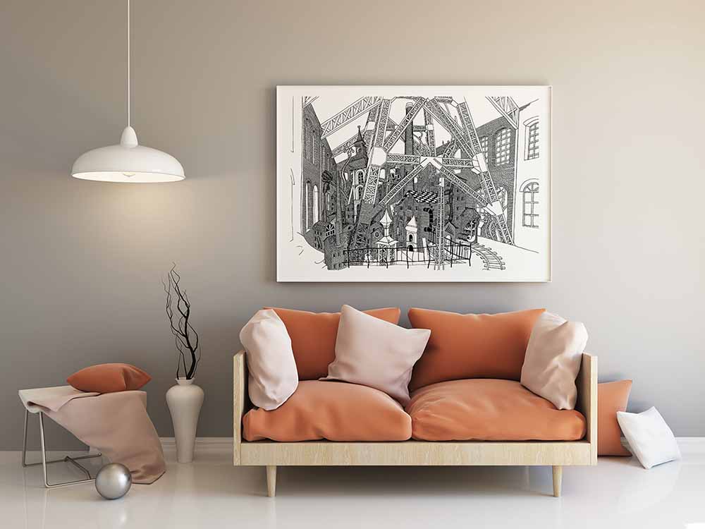 Surreal Art Print, Very Detailed Drawing, Mindfulness Art, Surreal Painting, Architect Gift, Poster Print.