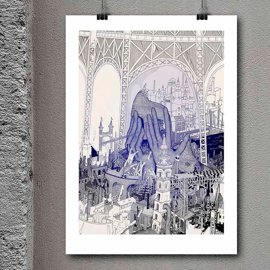 Surreal Art Print, Very Detailed Drawing, Mindfulness Art, Portrait of Judith - Surreal Painting, Architect Gift, Poster Print.