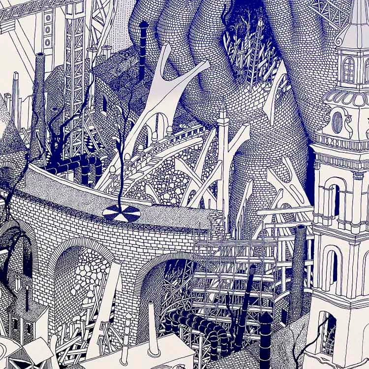 Although I started to draw the picture in 1983, it is still unfinished (like many of my works...:) and I continue working on it today.
