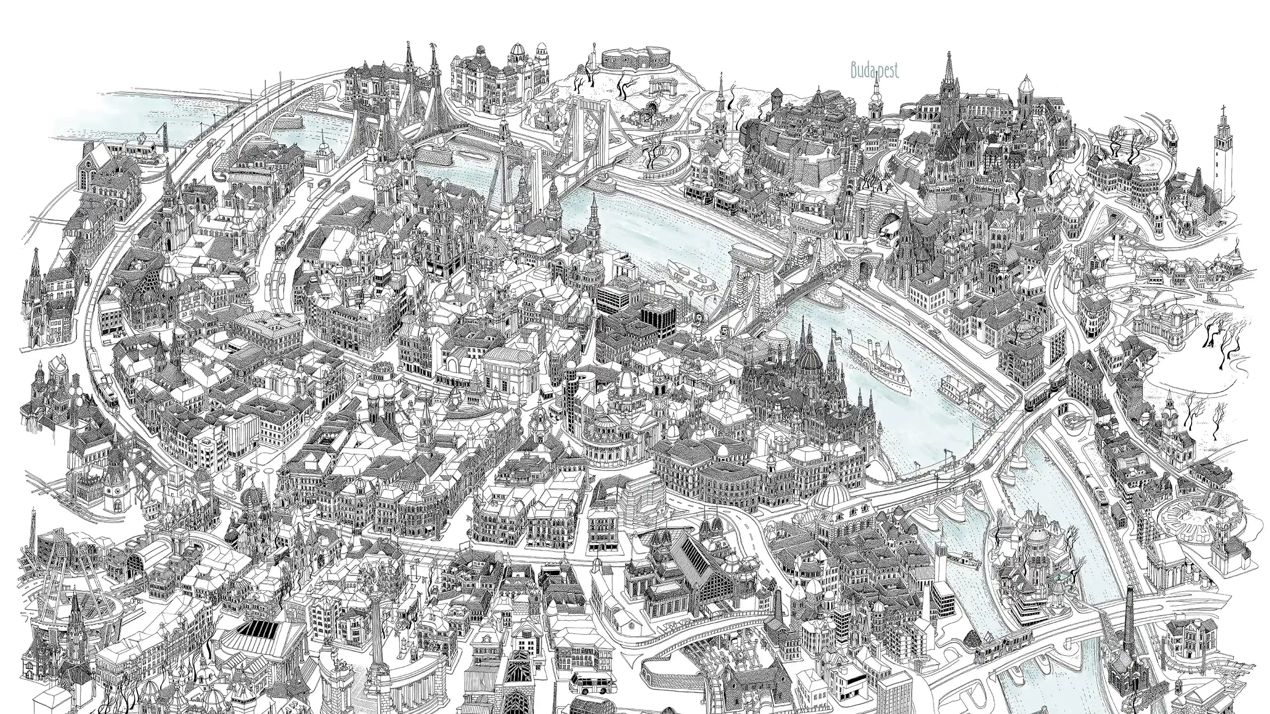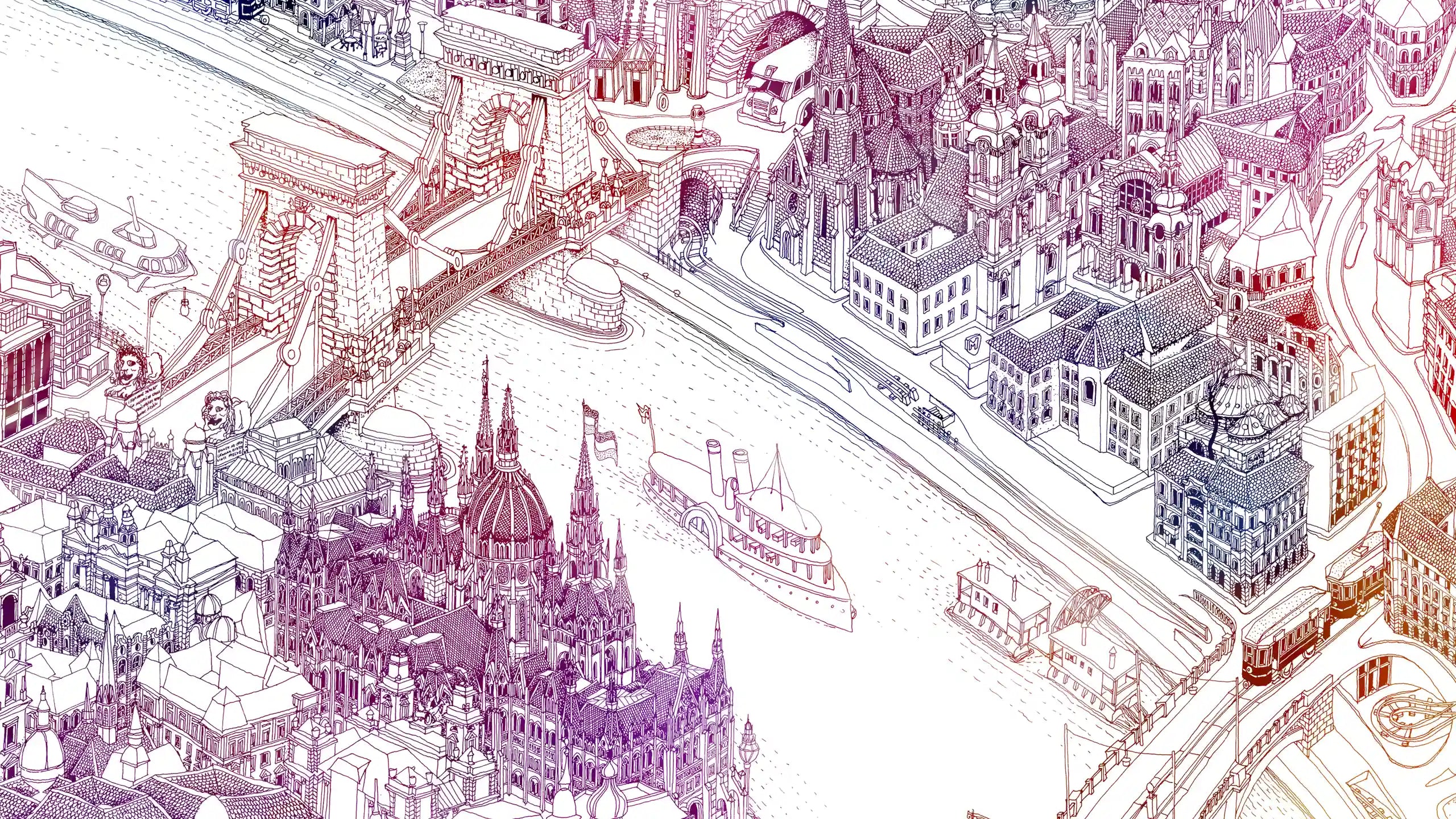 The subject of my drawings is Budapest, and The City in general, the metropolis. From bird’s eye view, or tangled in the surreally organic brick and iron jungle, sometimes playful, sometimes ironic, usually black and white, occasionally colorful. When people leave a town or a building, nature slowly retakes it. But what if everything happens the other way around and abandoned cities, iron beams, brickwork chimneys, pipelines come to life, and they mix with living organisms?