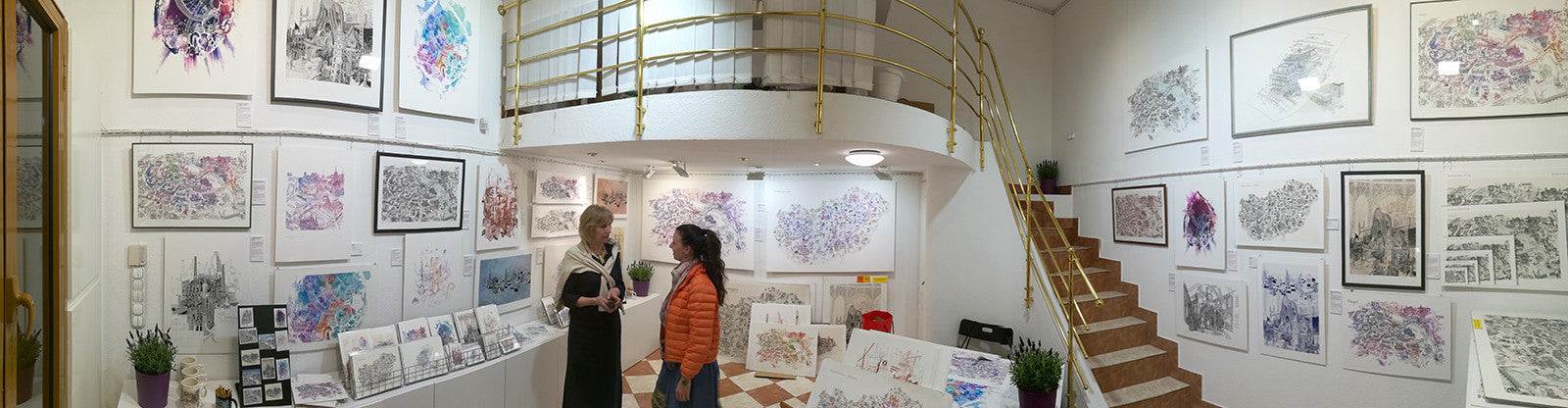 Very helpful gentlemen served me with great customer service and excellent English. I bought a black white and blue city sketch. It is a great momento from my time in Budapest. Prices are reasonable, and the pieces are more meaningful than cheap souvenirs.