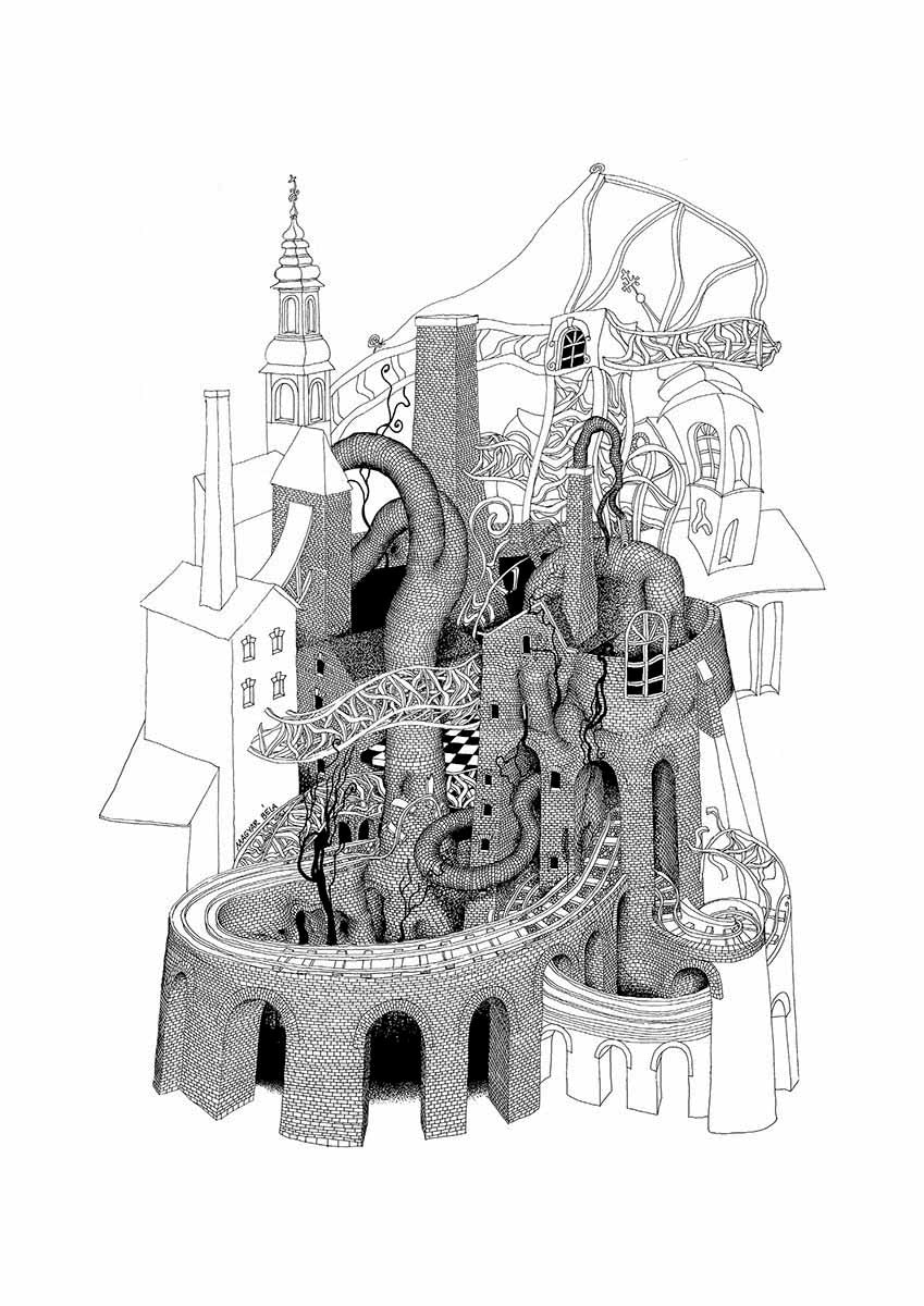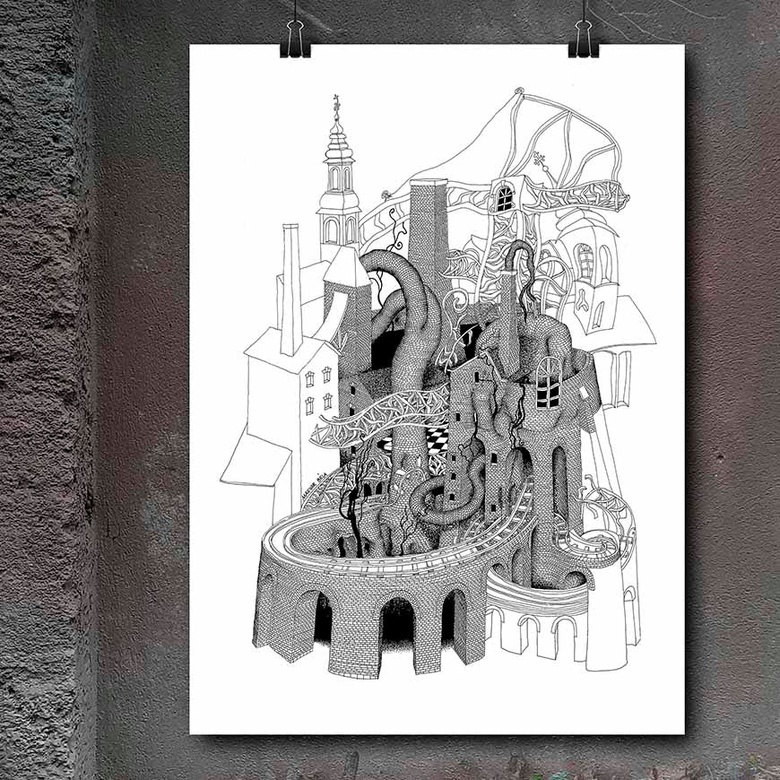 Surreal Art Print, Very Detailed Drawing, Mindfulness Art, Surreal Painting, Architect Gift, Poster Print.